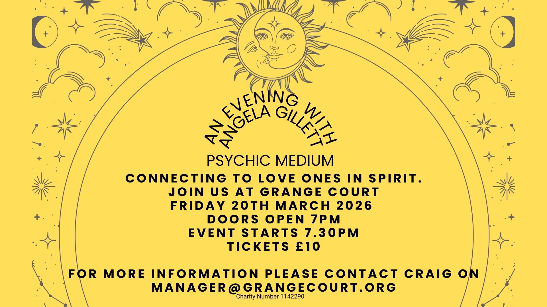 New Date! An evening with Medium Angela Gillet 20th May Let Angela connect to your loved ones in spirit.